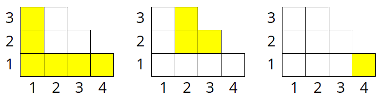 如果我們將方格圖各橫列的長度由下而上標示為