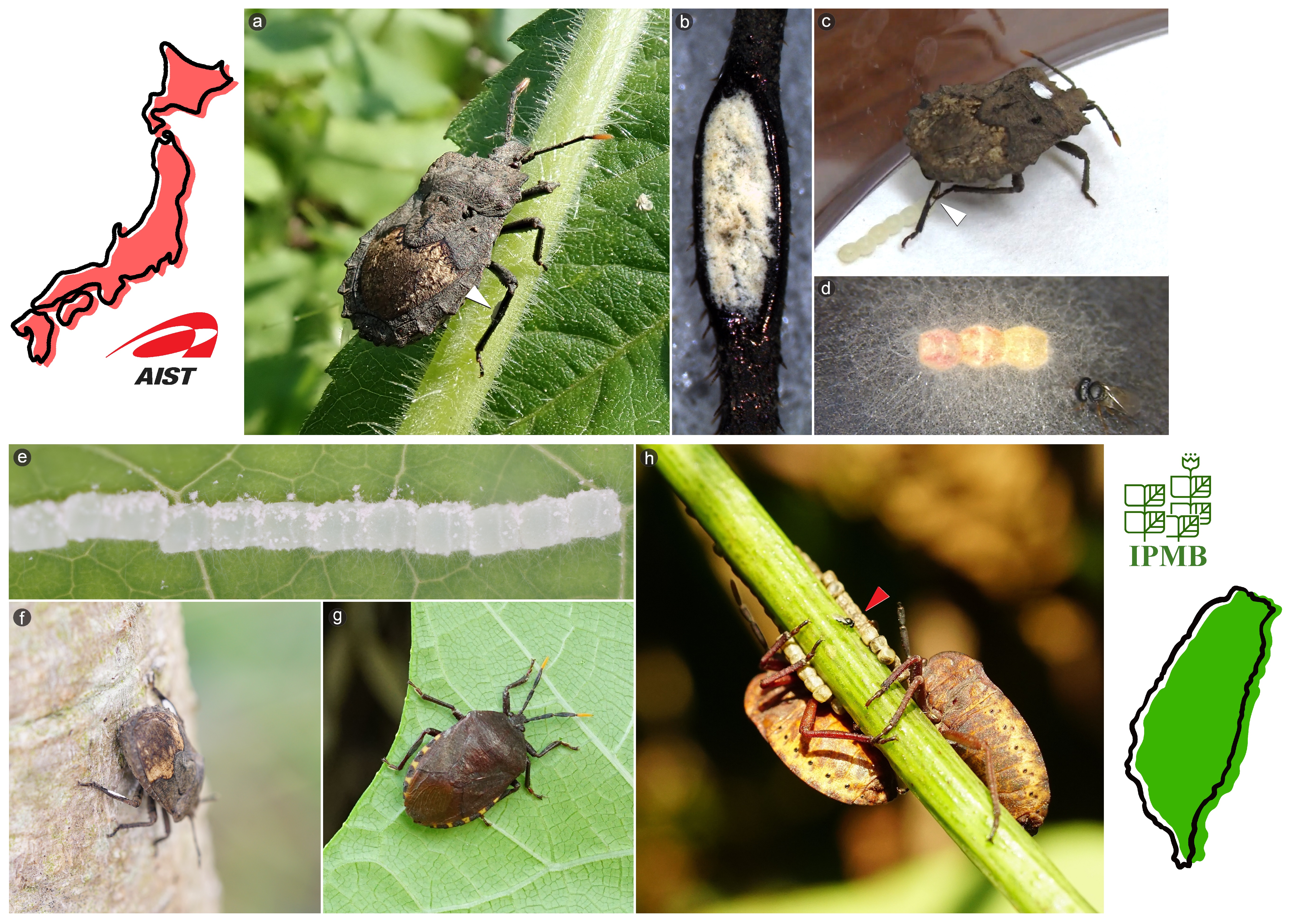 Stinkbugs are common agricultural pests, notorious for damaging crops and difficult to control. Chemical pesticides raise environmental concerns and face the problem of resistance, while parasitic wasps are widely used as natural biocontrol agents. Dr. Chih-Horng Kuo and his team at the Institute of Plant and Microbial Biology (IPMB), Academia Sinica, joined an international collaboration led by Dr. Takema Fukatsu at the National Institute of Advanced Industrial Science and Technology (AIST), Japan. The researchers discovered that female stinkbugs possess specialized organs on their hindlegs that cultivate symbiotic fungi. During egg-laying, the females smear these fungi onto their eggs, and the growing hyphae form a defensive layer that effectively prevents parasitic wasp attacks. Similar findings in multiple species from Japan and Taiwan, together with evolutionary analyses, suggest that this defensive symbiosis originated in an early ancestor of the Dinidoridae family.
