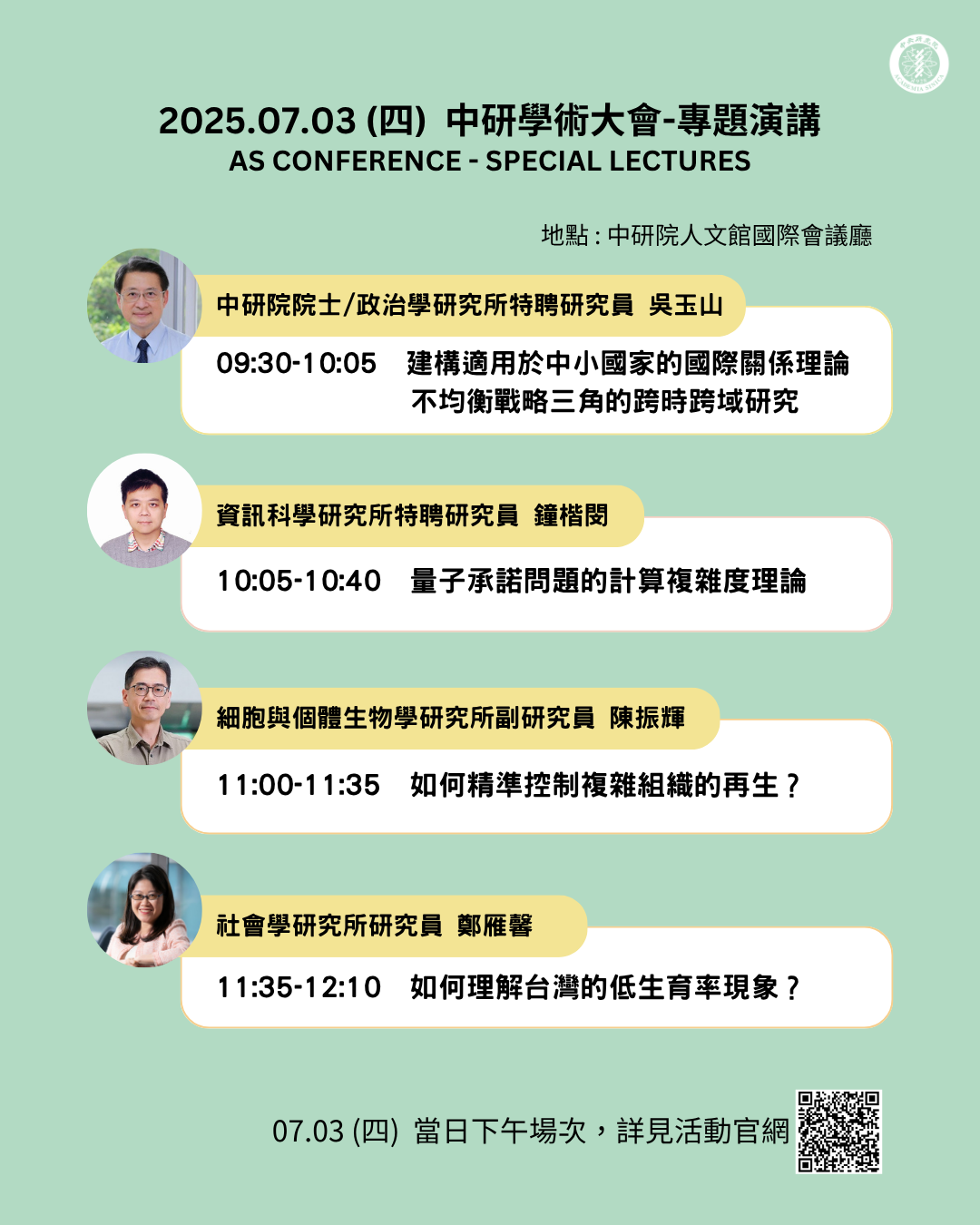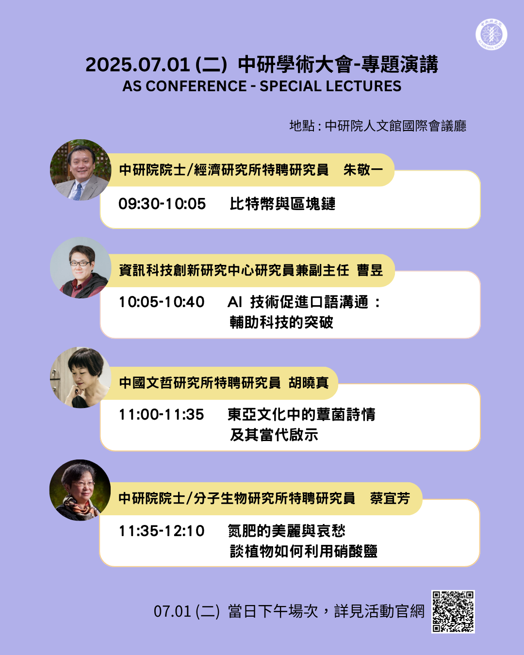 For full program and session details, please visit:https://asconference2025.dia.as.edu.tw/indexen.html