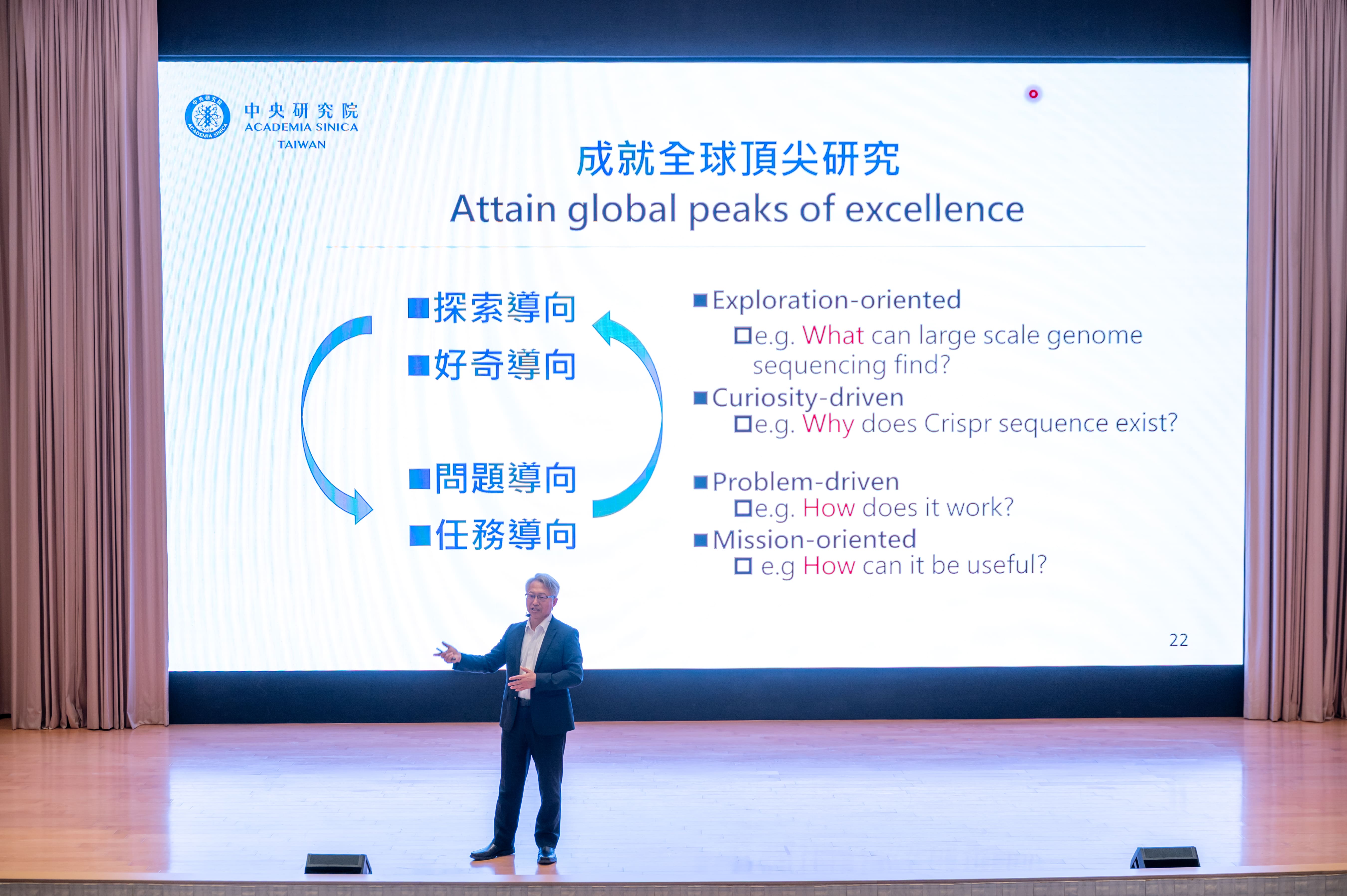 Academia Sinica is driven by “ambition, virtue and wisdom,” and outlined three strategic goals: attain global peaks of excellence, fulfil critical societal responsibilities, and recruit and cultivate top talents. Photo credit: Academia Sinica.