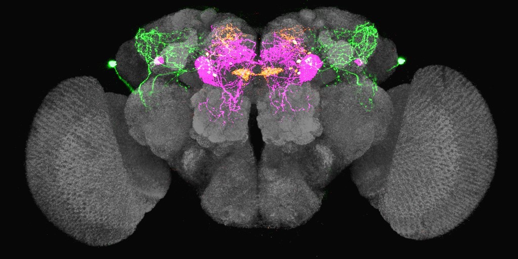 The research team showed that a neuropeptide called leucokinin functions as a thirst switch in the fly brain. Leucokinin is released when flies are dehydrated, and it drives flies to search for learned water cues by inhibiting two groups of dopamine-releasing neurons (thirst-DANs). Further study suggests that leucokinin is not only a thirst signal. Starvation also triggers its release in the brain. Interestingly, under this condition, leucokinin promotes learned food-seeking behavior via activating another group of dopamine-releasing neurons (hunger-DANs). Therefore, leucokinin is a shared signal for both hunger and thirst, but it acts on distinct groups of neurons to control how a fly responds to food or water cues.