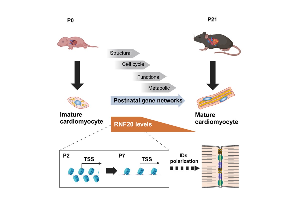 成長中的心臟如同一個正在建造中的家,而心肌細胞就是勤勉的建造者。科學家長久以來一直在思考,是什麼藍圖指導這些建造者完成他們的任務。本院細胞與個體生物學研究所高承福研究員團隊與生物醫學科學研究所張耀明助技師、陳建璋研究員及顏裕庭長聘副研究員攜手合作,揭示了這個過程中的關鍵角色:一種叫做RNF20的蛋白質。研究團隊合作進行一系列先進的基因組分析,細致追蹤了RNF20如何精確指揮心肌細胞的成熟過程,發現RNF20像是持有表觀遺傳調控大藍圖的建築師,可在不改變DNA本身的情況下開關基因。這項研究不僅確立了RNF20作為心臟發育中不可或缺的表觀遺傳調控者角色,也為治療心臟病開闢了新途徑。本研究已刊登於《細胞報告》(Cell Reports),為心臟健康和治療策略提供了新視角和希望。