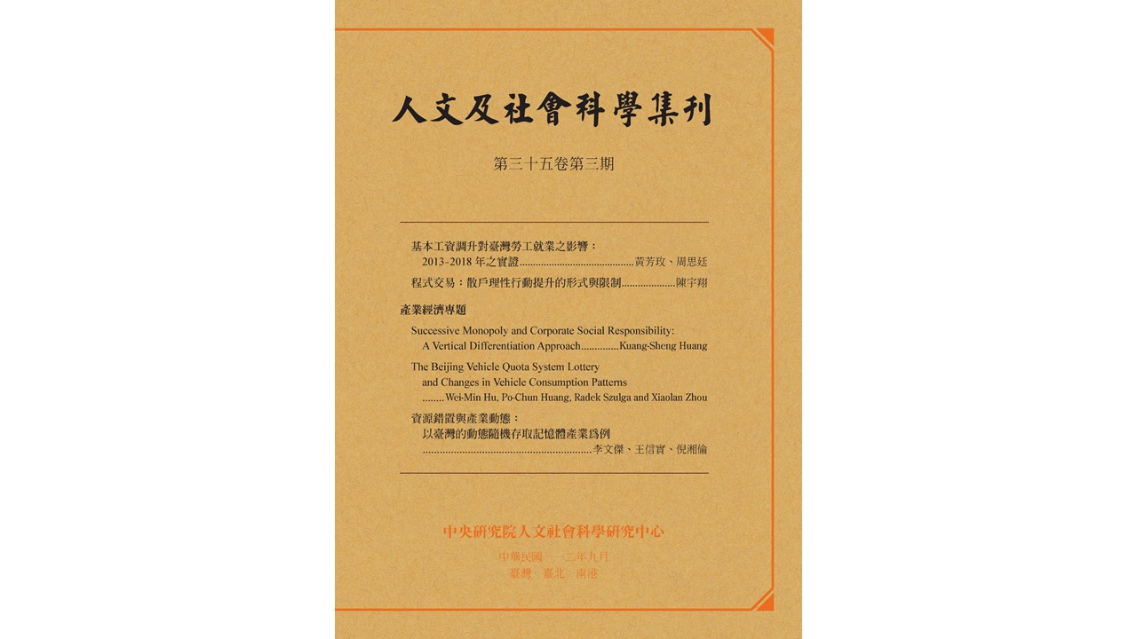 本院人文社會科學研究中心編印之《人文及社會科學集刊》第35卷第3期業已出版,本期共收錄五篇論文: