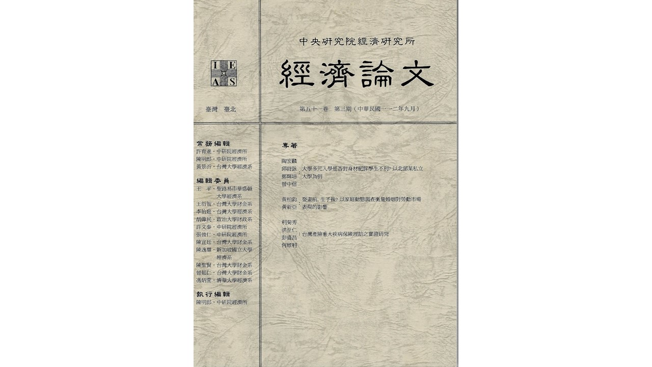 本院經濟研究所編印之《經濟論文》第五十一卷第三期業已出版,本期共收錄三篇論文,作者及文章標題如下:
