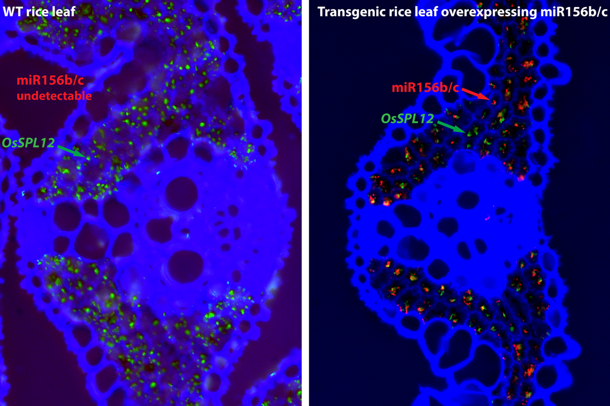 在生物學研究中,有時需要檢測一micro RNA (miRNA) 及其推定的標靶 mRNA是否在同一細胞中表現。為此,本院生物多樣性研究中心特聘研究員李文雄團隊開發了一種新穎原位檢測方法,主要利用滾環式擴增法得到極高信噪比的可計量訊號,並可應用於同時檢測多種RNAs。 本成果刊登於《植物生物技術》(Plant Biotechnology Journal )。