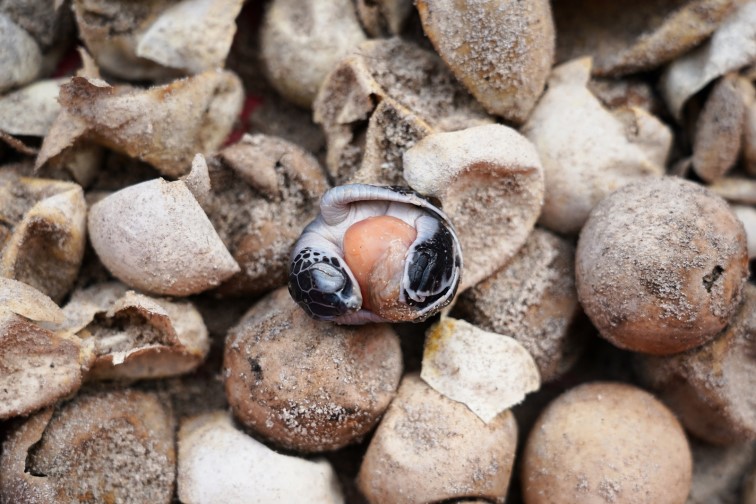 為探究海龜蛋為何被普遍熟知的植物病原真菌 - 茄鐮孢菌複合種感染,本院生物多樣性研究中心副研究員蔡怡陞團隊成員-何芷蔚博士於就讀TIGP學程時,自2018年開始拜訪馬來西亞不同的海龜蛋孵化場,分離並定序出了兩種最常見感染海龜蛋的病原真菌完整基因體。團隊進一步與另外四株相同複合種的病原菌基因體相比,發現這些不同染色體可以被歸類成三種演化模式,使得該真菌複合種更可以適應各種環境及感染跨界宿主。經感染實驗證實,許多已知感染植物宿主的基因也會在感染動物時表現。