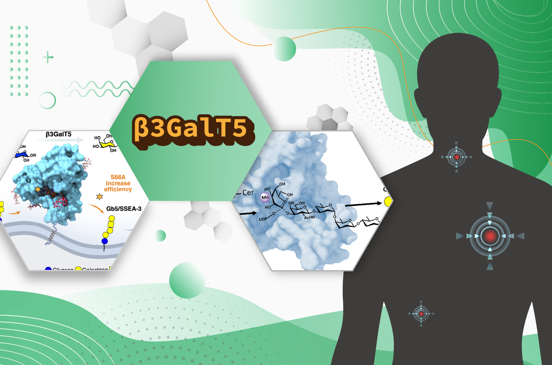 癌症是全球主要死因之一,根據國際癌症研究機構(IARC)數據,2022年全球約有2,000萬新病例與970萬死亡。由本院基因體研究中心翁啟惠前院長與馬徹研究員帶領的團隊,近期在癌症研究領域取得突破。他們深入研究人類β-1,3-半乳糖基轉移酵素5(β3GalT5),此酵素與腫瘤生長和轉移密切相關,是癌症療法及疫苗研發的關鍵靶點。 研究團隊利用結構生物學解析β3GalT5的轉糖機制,揭示其催化過程及治療潛力,發現突變體S66A能高效合成癌症相關醣分子(如Globo-H),效率提升十倍,有助降低疫苗生產成本,並加速三陰性乳腺癌等癌症的臨床應用。此研究不僅為抑制劑開發奠基,也展現基礎科學轉化為醫療應用的價值。 研究成果已於2025年3月分別兩篇論文刊登於《美國化學學會期刊》(Journal of the American Chemical Society),此研究獲中央研究院及相關機構經費支持。