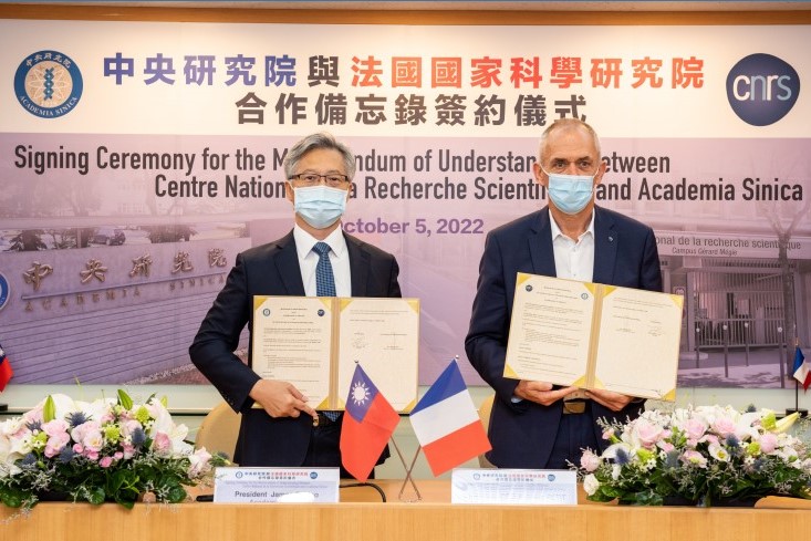 為拓展國際學術交流,厚植我國與法國科學界之合作,本院與法國國家科學研究院(CNRS)近日續簽署合作備忘錄,除深化合作情誼外,雙方並允諾逐步落實研究團隊互訪、執行關鍵科研計畫、共同培育頂尖人才等具體合作事項。