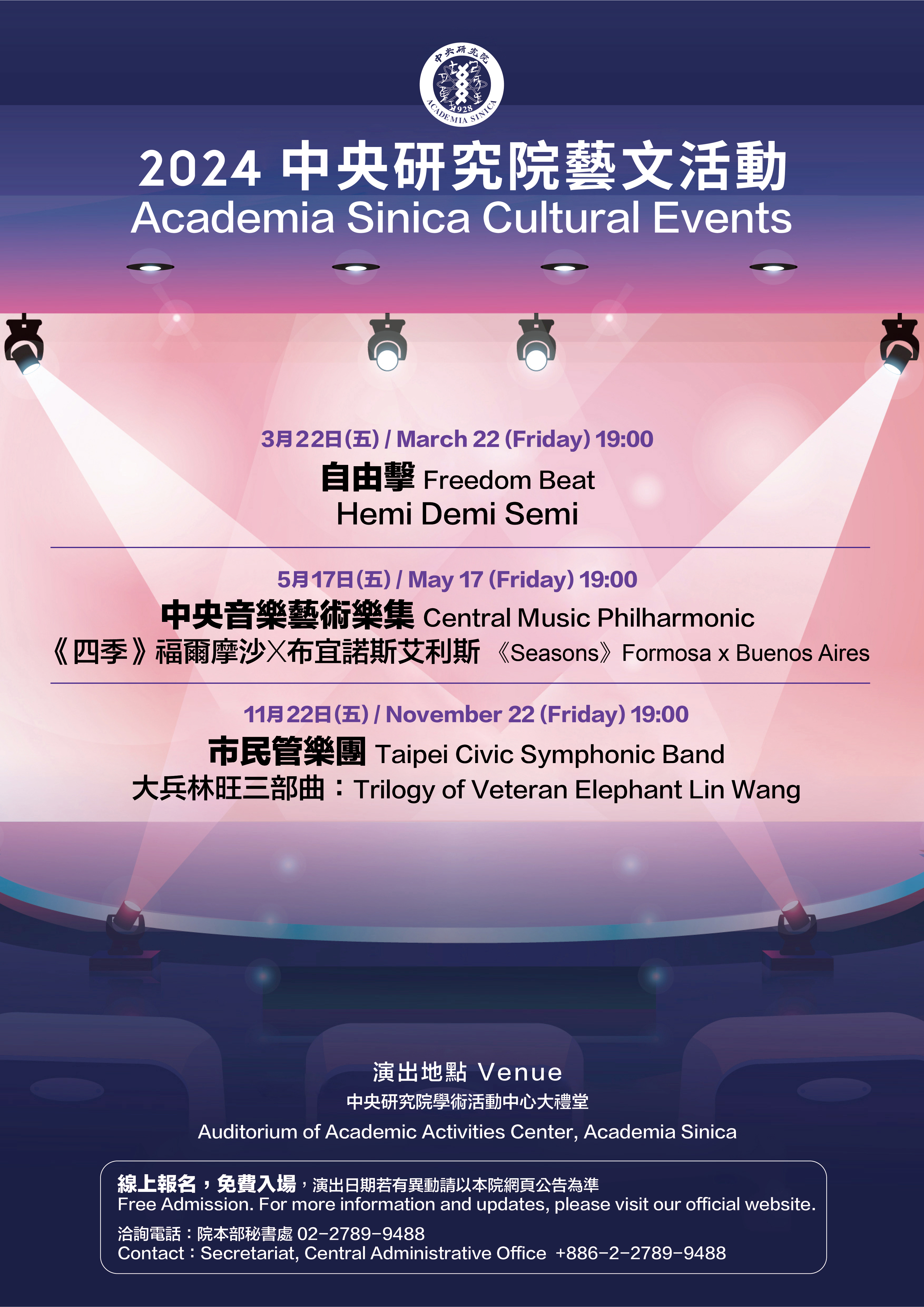 本院為推動藝文表演藝術之發展,鼓勵優秀表演團體、豐富週邊居民文化生活,2024年規劃3場藝文活動表演,歡迎共襄盛舉。