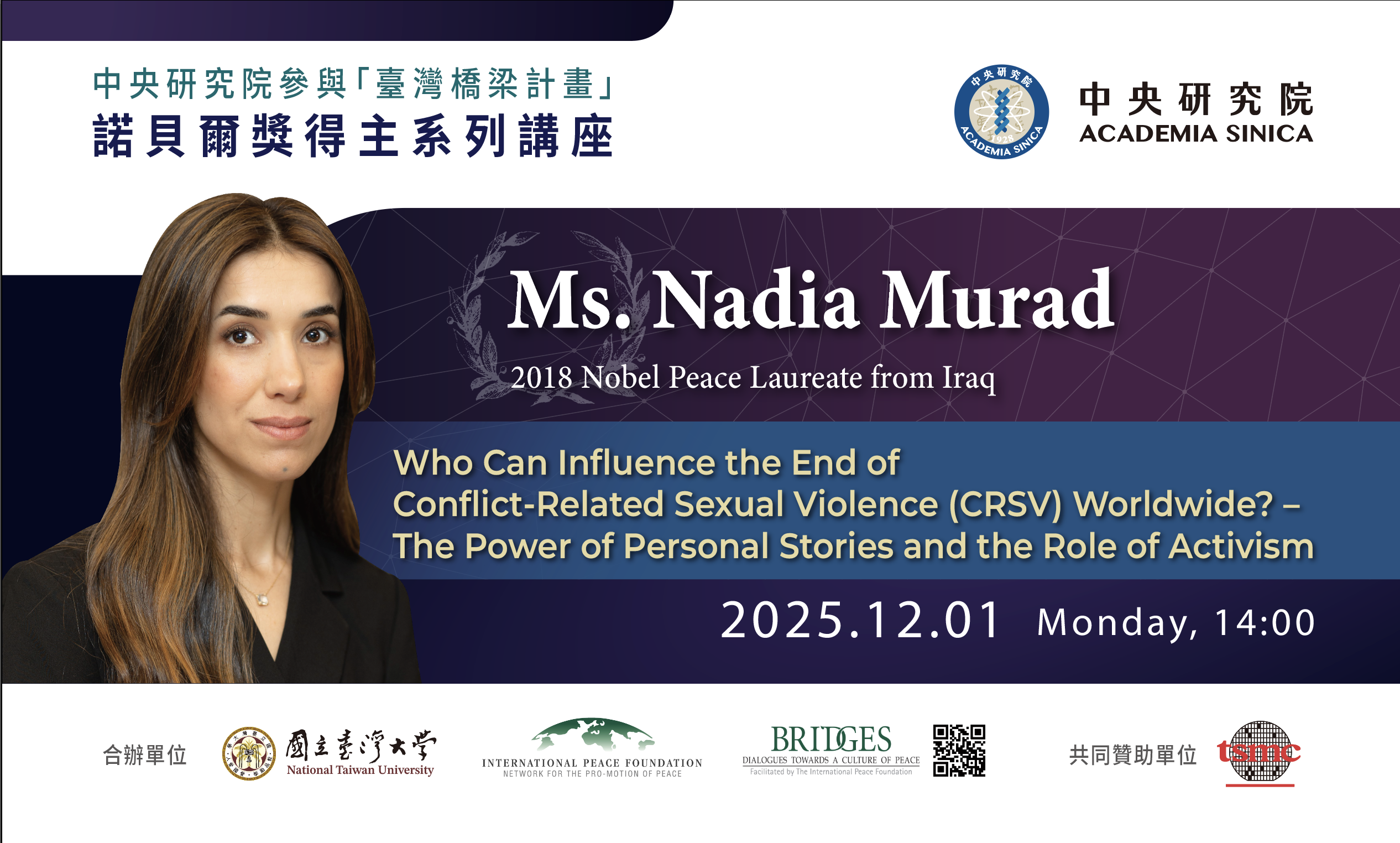 活動報名〉「臺灣橋梁計畫」諾貝爾獎得主系列講座「誰能推動全球衝突相關性暴力(CRSV)的終結?— 個人故事的力量與行動主義的角色 」