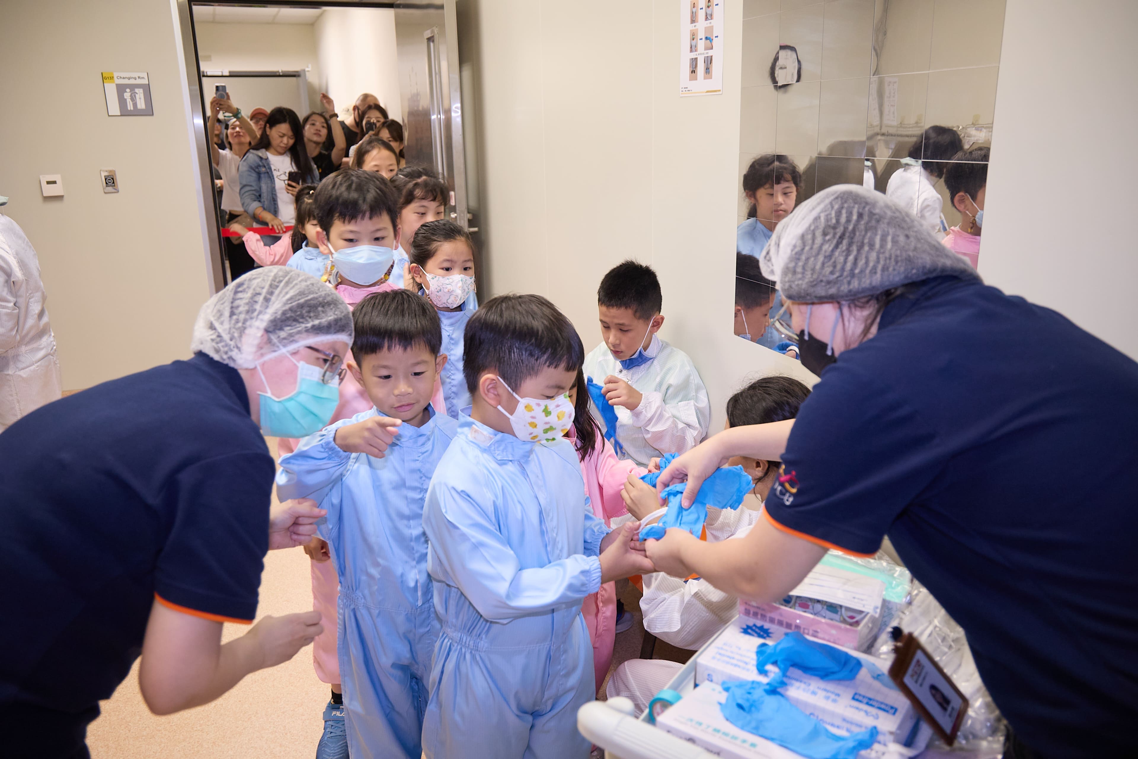 應科中心「無塵室穿梭與元件製程體驗」,了解如何正確穿脫無塵衣、鞋、髮帽、口罩及手套等裝備。(圖片來源:中央研究院)