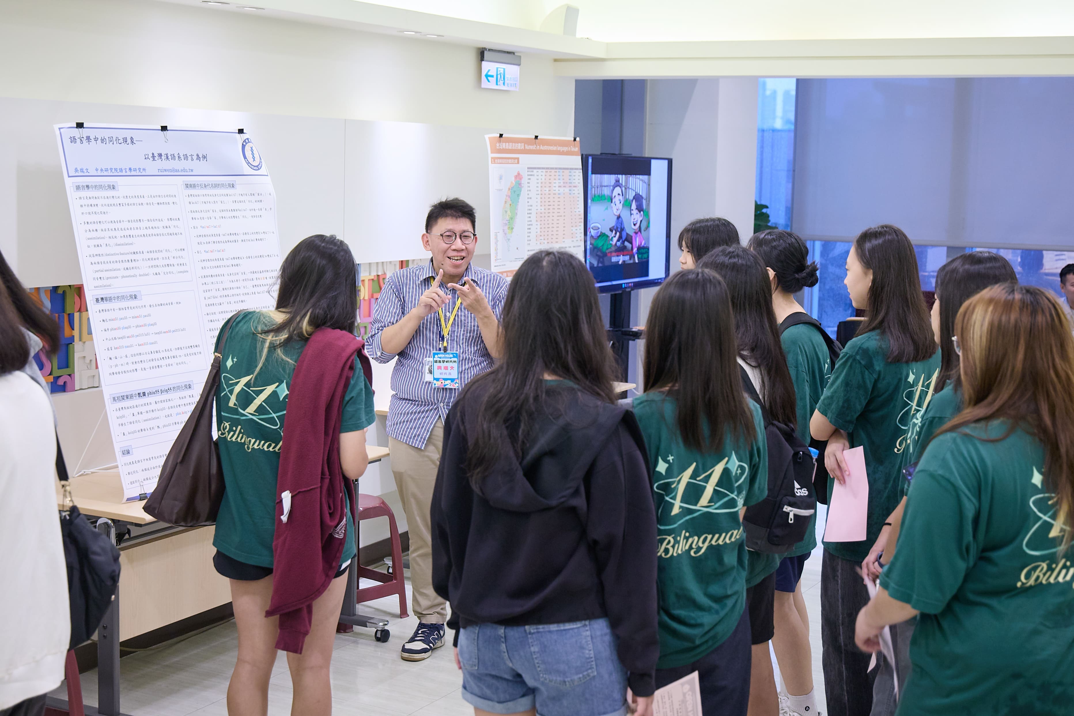 語言所向學生介紹臺灣漢語系語言中的同化現象。(圖片來源:中央研究院)