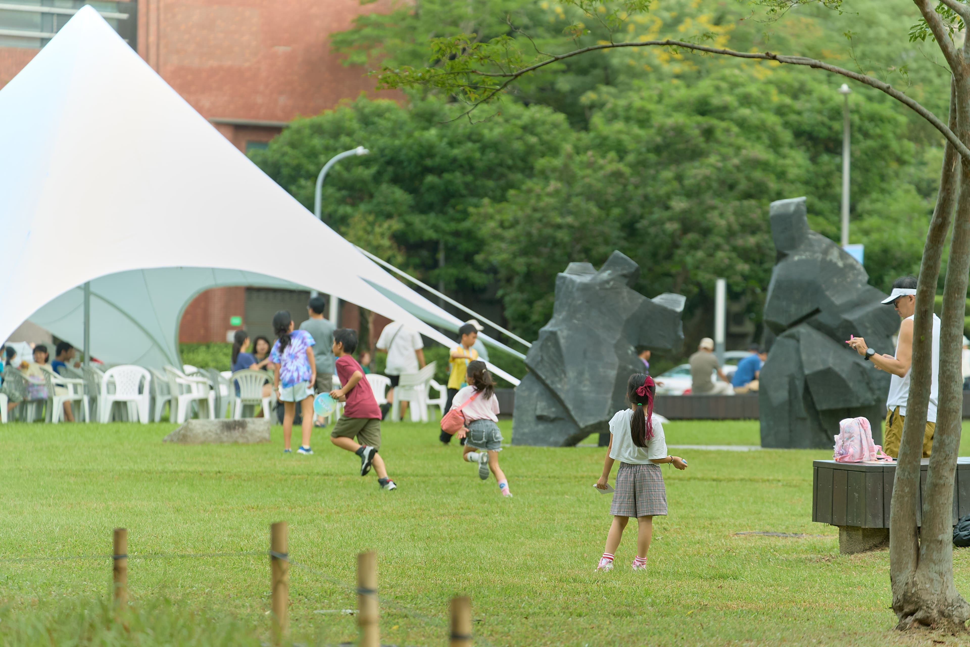 小朋友在院區草地奔跑。(圖片來源:中央研究院)