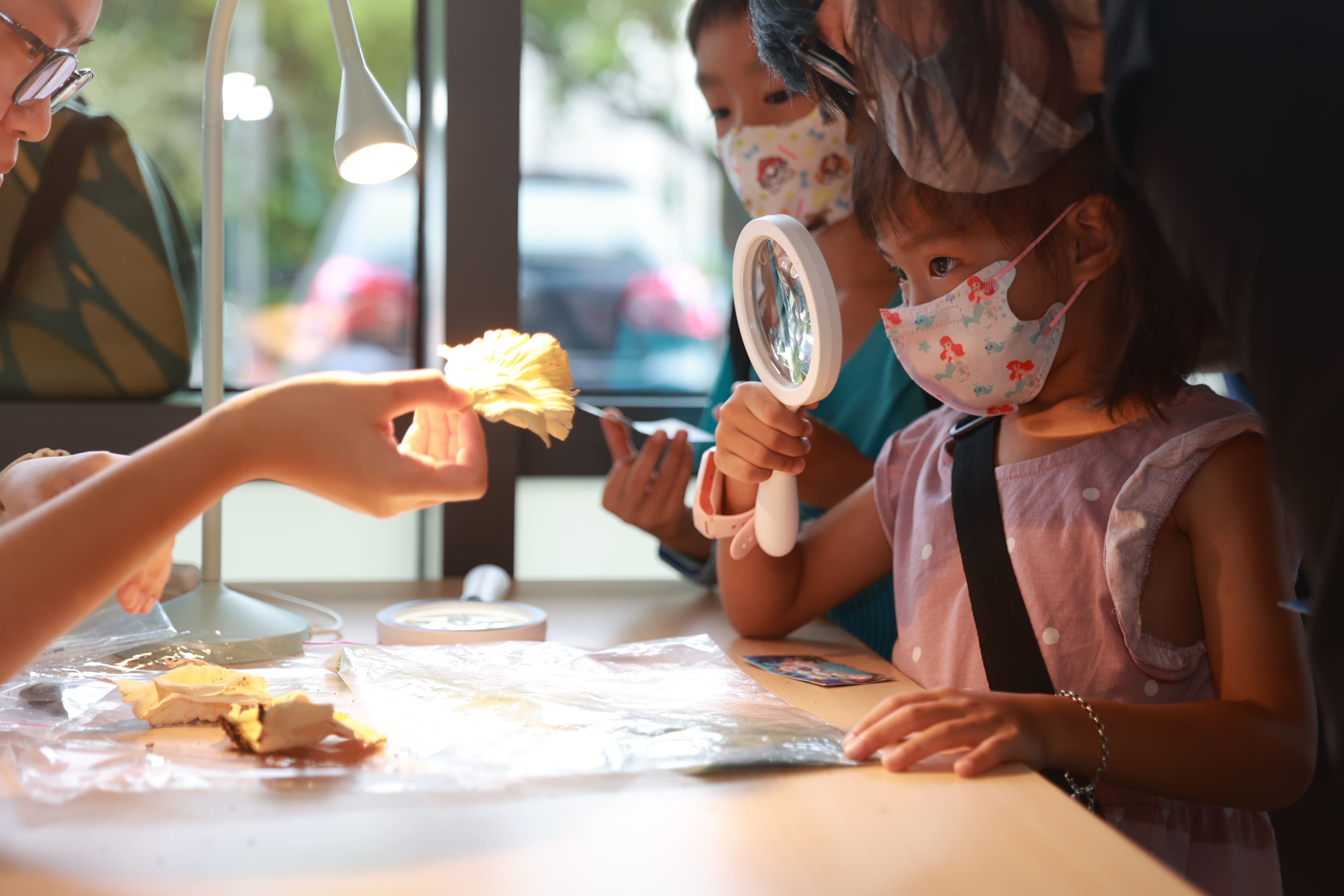 最具「森林系」魅力的展區,帶領民眾認識蘚苔的生命週期、穿梭在院區尋找各種蘚苔植物,打卡換禮物;而最受歡迎的「小小藝術家」與「綠意魔法瓶」活動,讓大小朋友親手打造專屬的微型森林,帶著小立碗苔和地錢回家觀察。打開五感,每個孩子都變身小小科學家、觀察家、探險家,讓人文與科學在日常生活中萌芽。